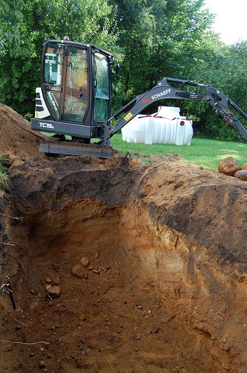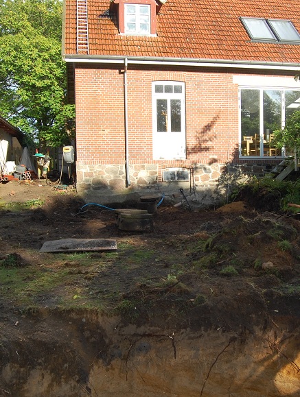 Men den gamle septic-tank lå hvor der skulle bygges, så først skulle der nedgraves og tilsluttes en ny tank.