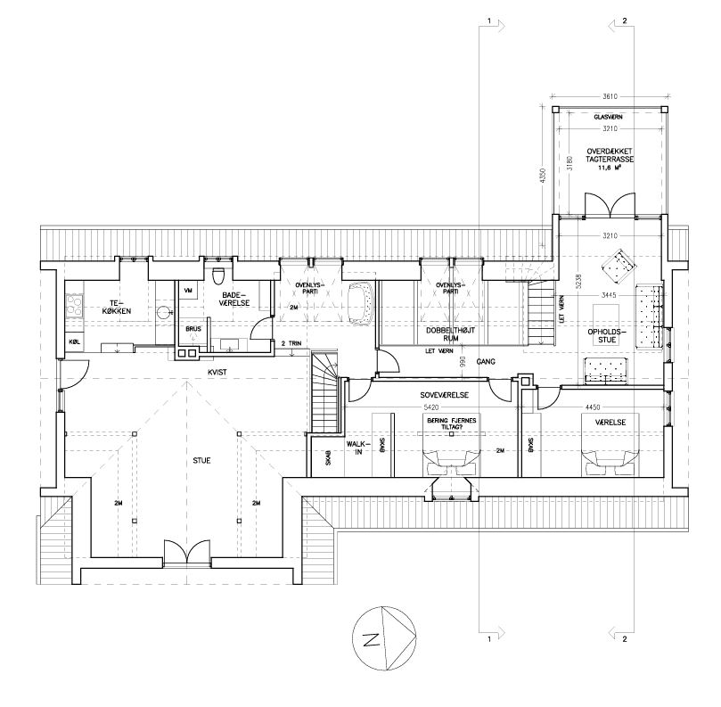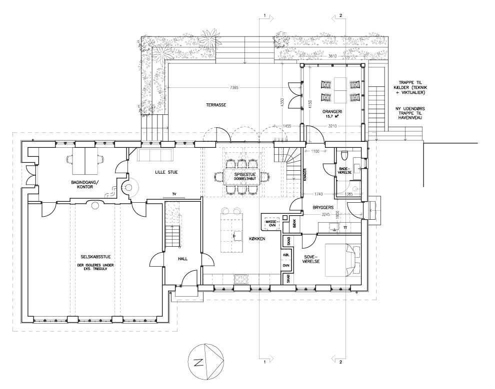 Grundplaner og snit som planlagt efter moderniseringen i 2023