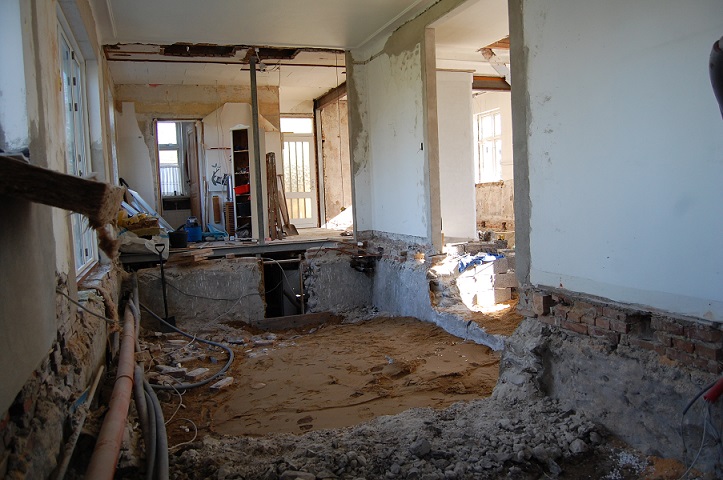 Gulv og vægge fjernet, alle bærebjælker opsat