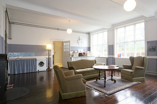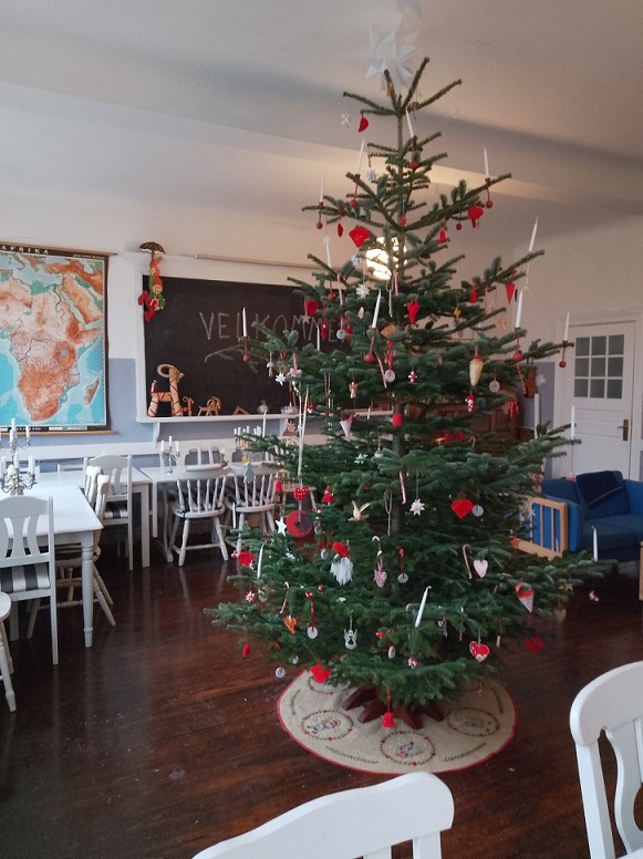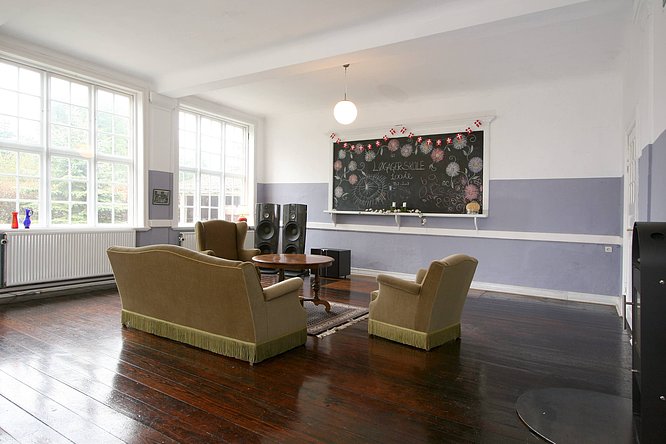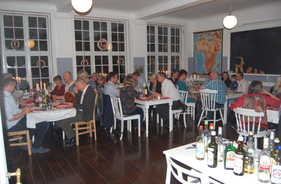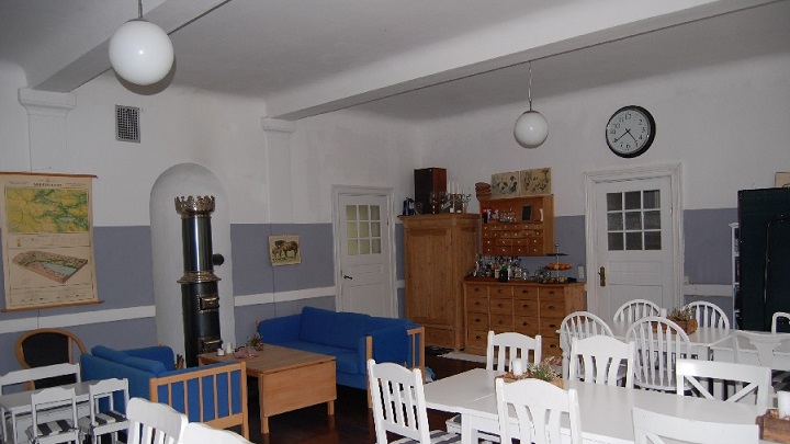 Vi har møbleret skolestuen så den med små ændringer kan være klar til selskabsbrug. For eksempel anvendes den til en årlig